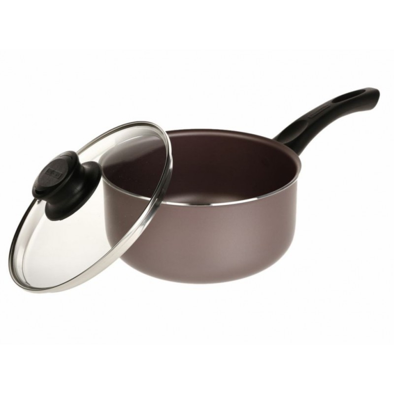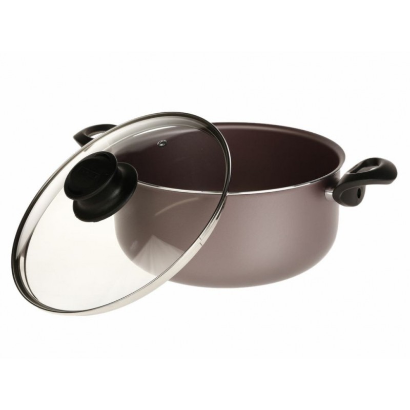 Aluminio con revestimiento interno y externo de antiadherente Starflon 1. Tapas de vidrio templado con salida de vapor. Agarraderas de nylon. Asas y mangos de baquelita antitérmica. Utensilios de nylon