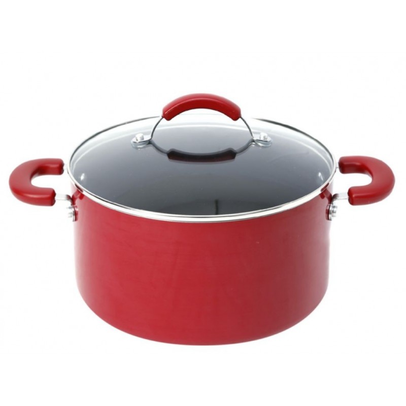 DetallesCada utensilio cuenta con superficie interior antiadherente, elaboradas en aluminio anodizado, su exterior de esmalte de porcelana los hace resistentes a las manchas y fáciles de limpiar, incorporan tapas de vidrio que permiten supervisar la cocción, además cuentan con mangos con doble remachado y almohadillas de silicona que proporcionan un agarre eficaz y fuerte