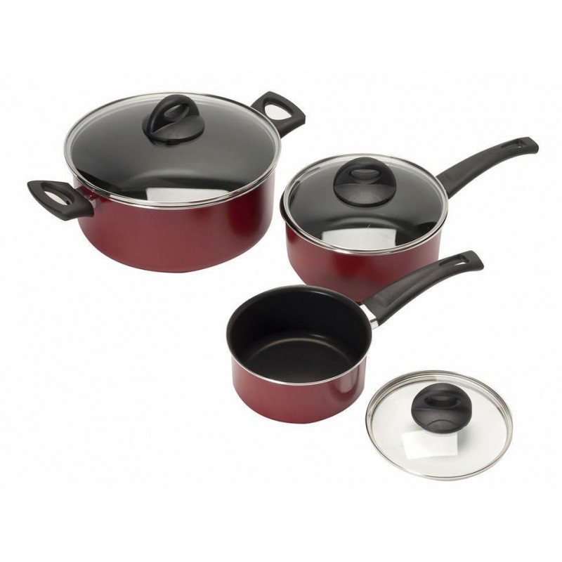 DetallesAluminio con antiadherente, tapas de cristal, mangos y agarraderas de baquelita