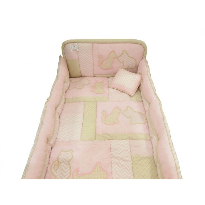 DimensionesSábana plana: 135 cm x 180 cm Sábana cajón: 135 cm x 160 cm Funda almohada: 27 cm x 42 cm Colchoneta: 95 cm x 140 cm Cabecera: 95 cm x 50 cm Protector: 400 cm x 28 cm Cojín decorativo: 32 cm x 25 cm