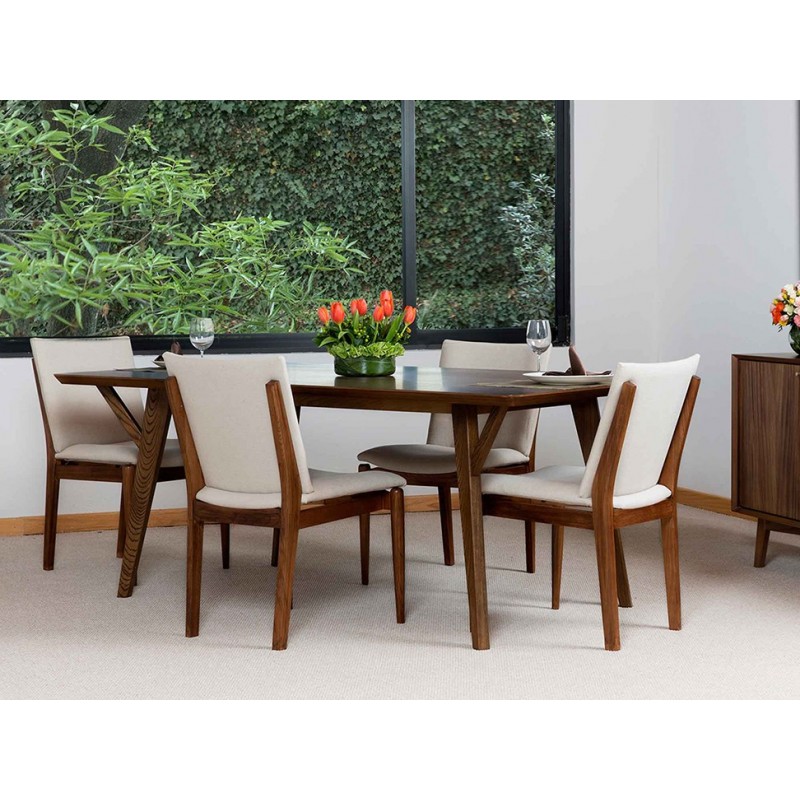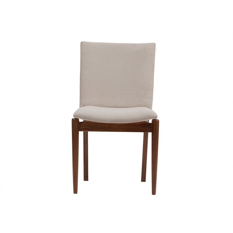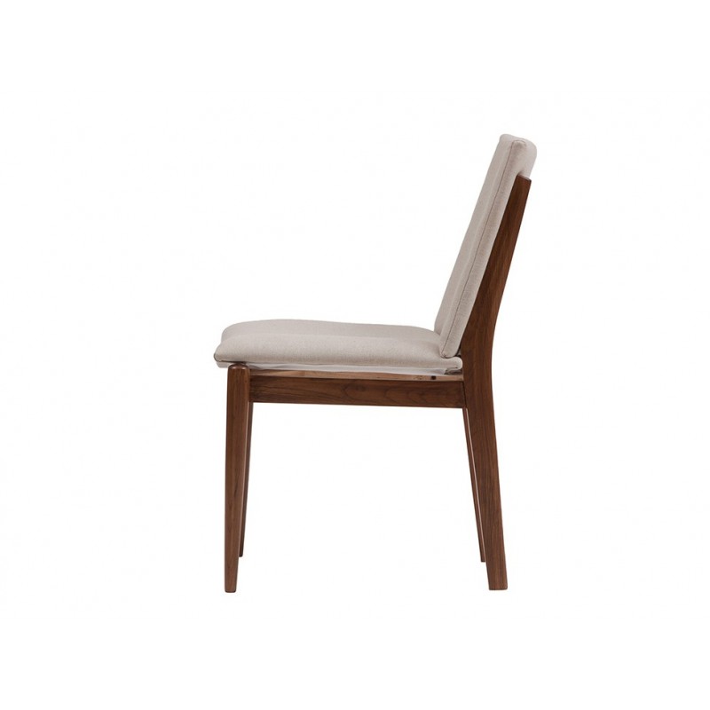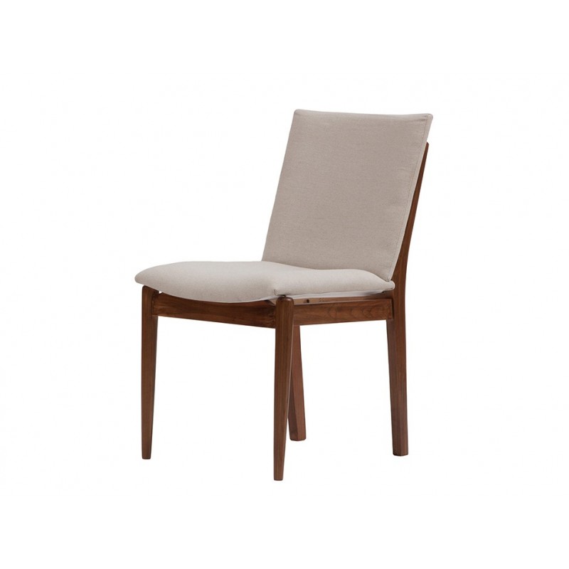 Composición exterior: Madera y tela beige de lino-algodón.