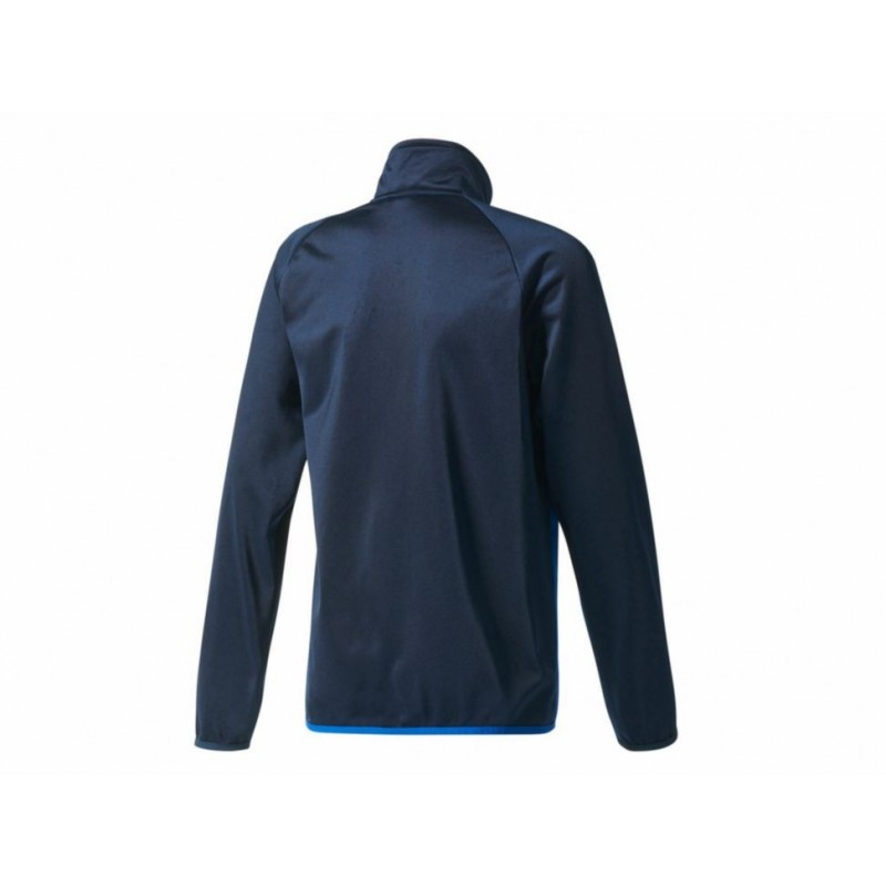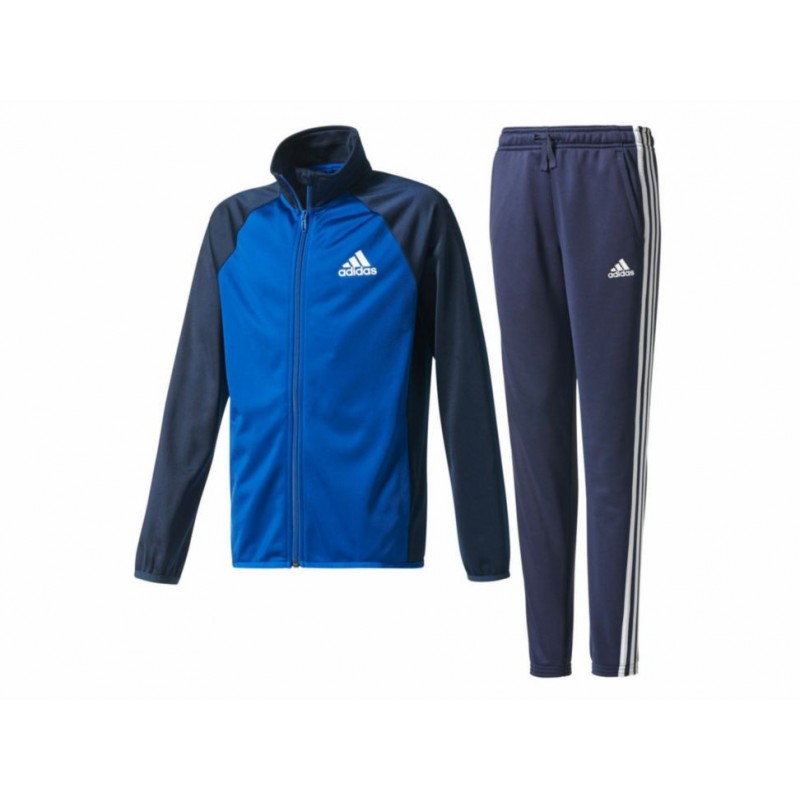 Conjunto que consta de chamarra con cuello alto, logo de la marca en parte superior izquierda y fijación de cremallera; Pantalón con fijación de elástico en cintura y jareta ajustable, franjas distintivas de Adidas, bolsillos laterales y costuras suaves. Diseño ligero y cómodo