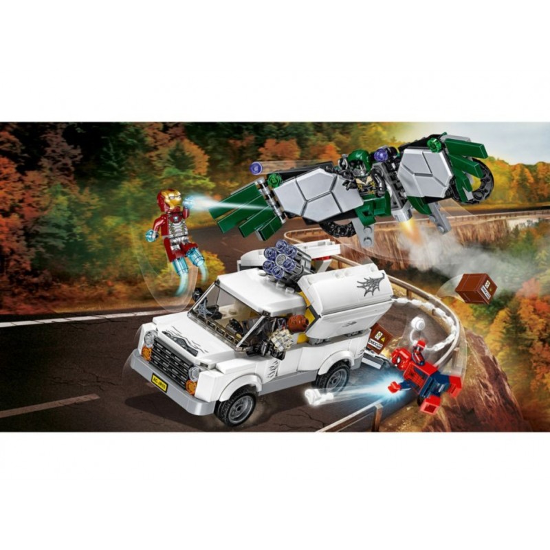¡Emergencia! Llama a Spider-Man a su smartphone y pídele que ayude a Iron Man a perseguir la camioneta de The Shocker. Esquiva el cañón rápido de 6 proyectiles de la camioneta y devuelve el fuego con las ráfagas de poder de Spider-Man.