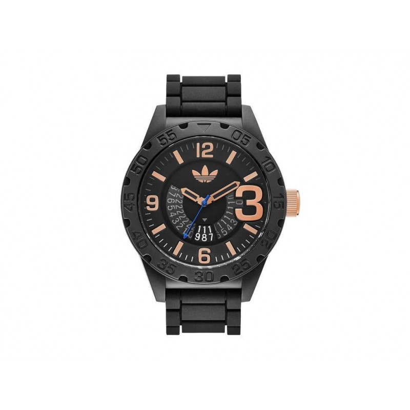 Reloj Adidas Originals para caballero, correa de silicón negra, carátula negra, Análogo y Fechador