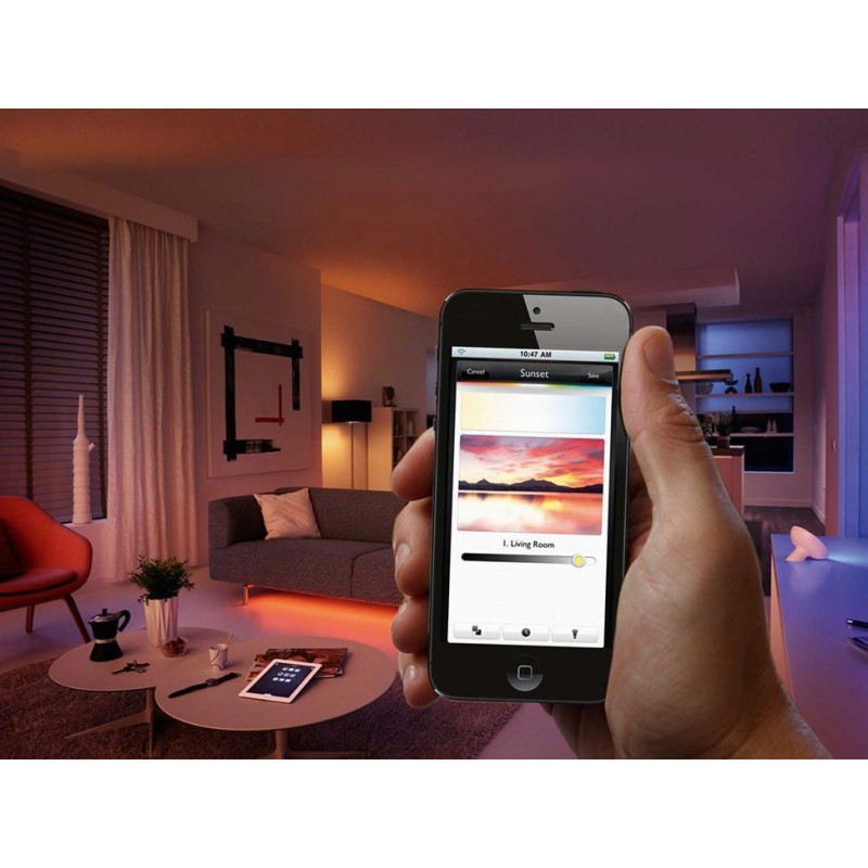 Incluye un foco GU10 Philips Hue en tu sistema Philips Hue y disfruta de su luz blanca y coloreada de alta calidad que te ofrece infinitas posibilidades para crear ambientes y controlar la luz desde un dispositivo móvil