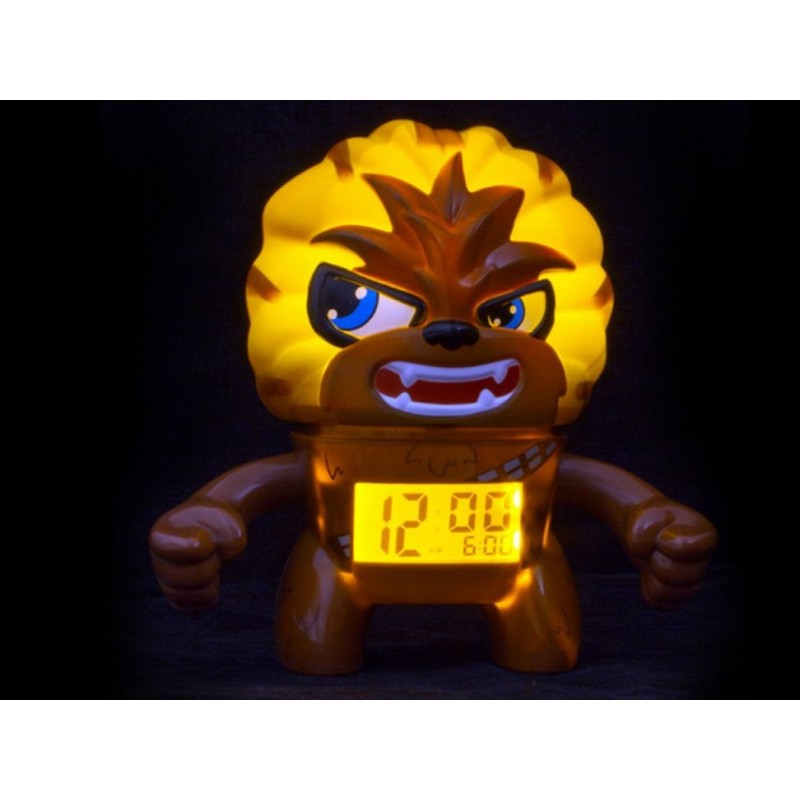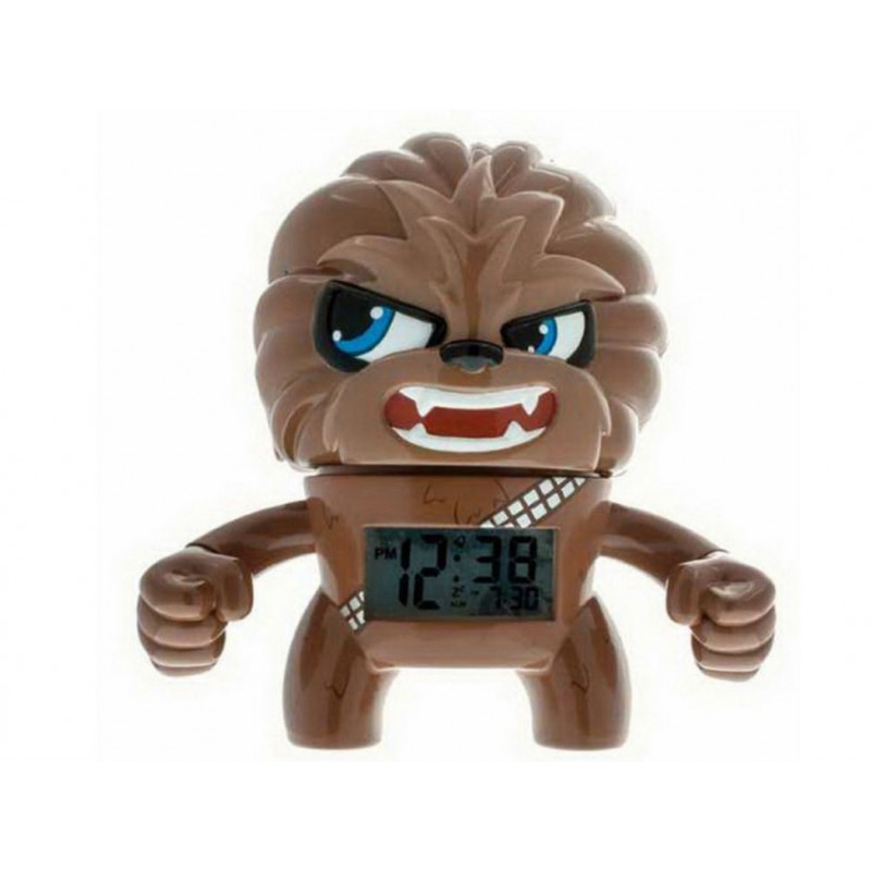 CaracterísticasCon funciones de alarma y repetición de alarma, pantalla LCD digital en formato de 12/24 horas, iluminación en la cabeza del personaje. La luz de fondo y la función de repetición de alarma se activan presionando hacia abajo la cabeza