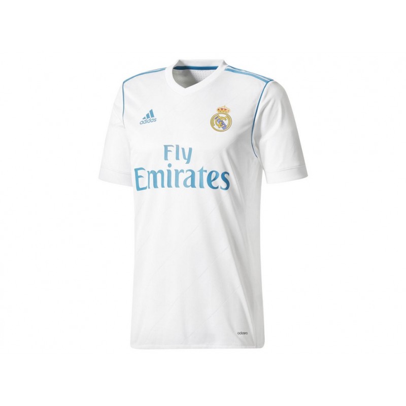 Mantente conectado a los partidos con este jersey de la temporada 2017/18 con cuello V, logo de la marca, escudo del equipo y patrocinio en parte frontal, franjas distintivas de Adidas en hombros, costuras suaves que se deslizan suavemente sobre la piel; diseño cómodo que permite mayor libertad de movimiento