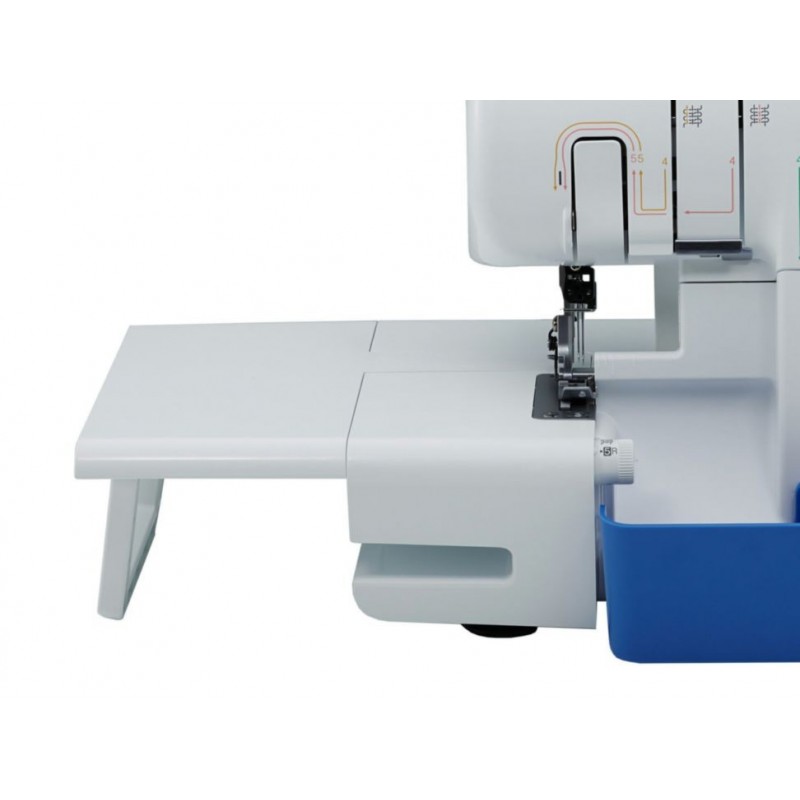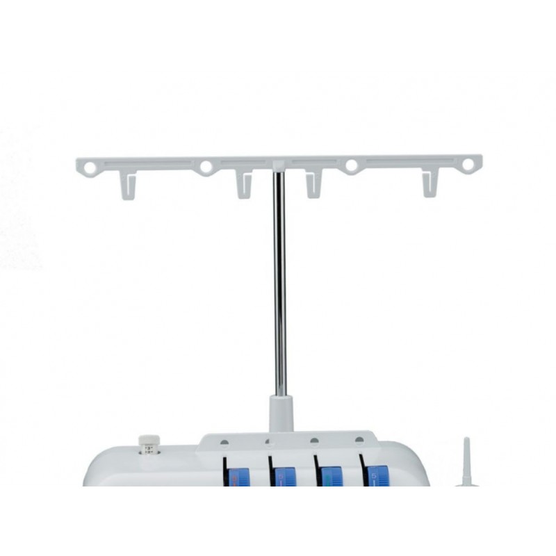 Otra InformaciónMovimiento de la barra de las agujas: 25 mm, Tipo de prénsatelas libre. Elevación de prénsatelas 5 mm a 6 mm. Número de agujas e hilos: Conmutación posible entre 3 y 4 hilos, 2 agujas o una sola