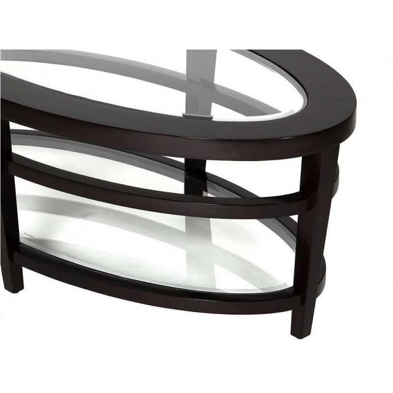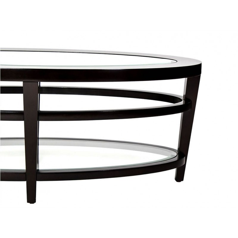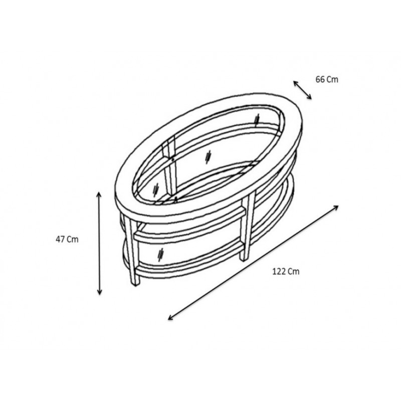La mesa de centro Urbana está inspirada en el estilo retro de los años 50's, con un diseño que incluye líneas delgadas, inclinadas y patas afiladas con un riel ovalado en la parte media entre la superficie y repisa inferior.