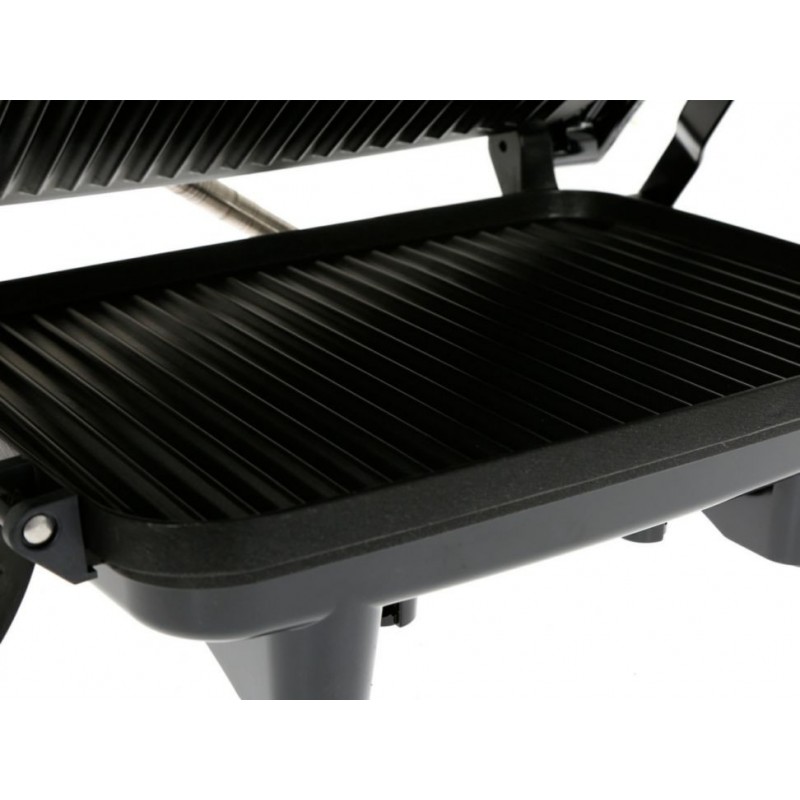 Instrucciones de Cuidado y LimpiezaUtilice una esponja húmeda con detergente para limpiar las superficies de cocción. Limpiar las superficies de nuevo se un paño limpio y húmedo. No utilice esponjas metálicas o cualquier clase de limpiador abrasivo ya que pueden dañar la superficie de cocción antiadherente. Use un paño limpio y húmedo para limpiar la parte externa de la parrilla para panini