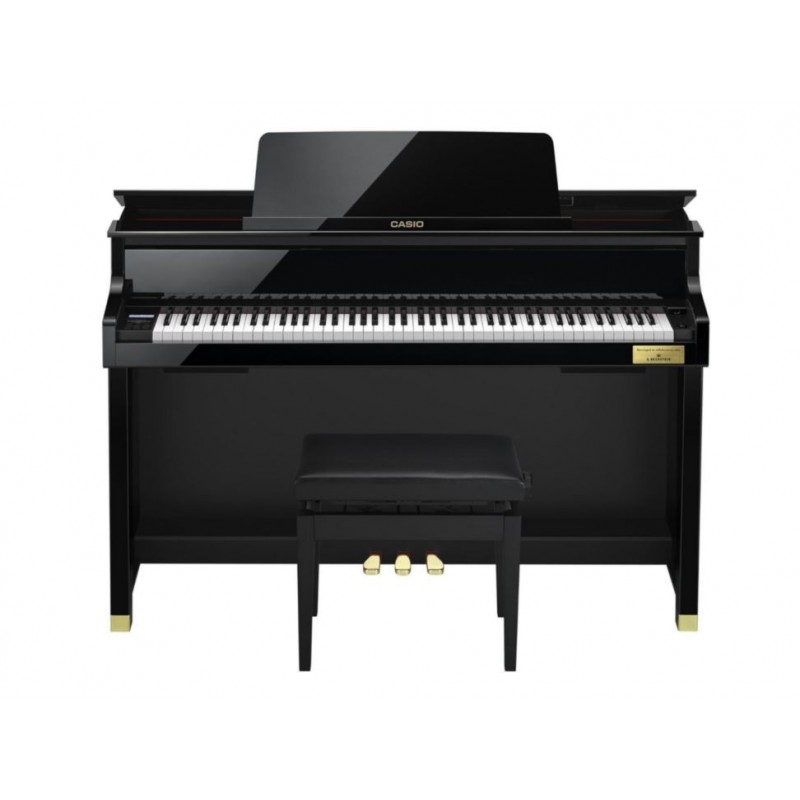 El siguiente capítulo en la historia del piano. Casio se enorgullece de traer su primer Piano Híbrido: el Celviano GP500 BP. Elegante, con acabado negro pulido, compacto y potente.