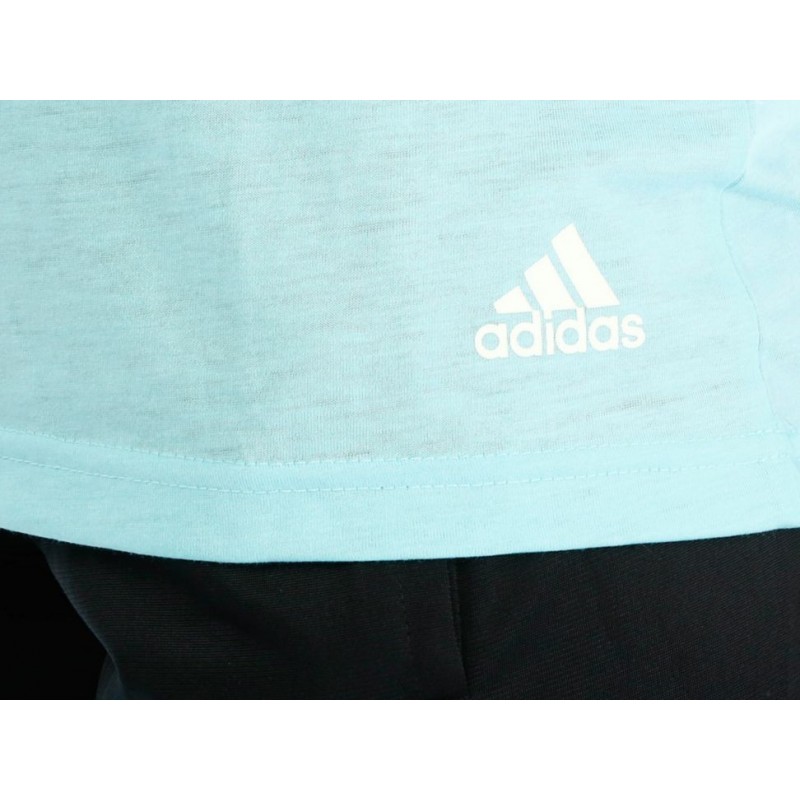Playera con logo de la marca en parte inferior izquierda, franjas distintivas de Adidas en hombros, costuras suaves. Confección ligera que brinda mayor libertad de movimiento