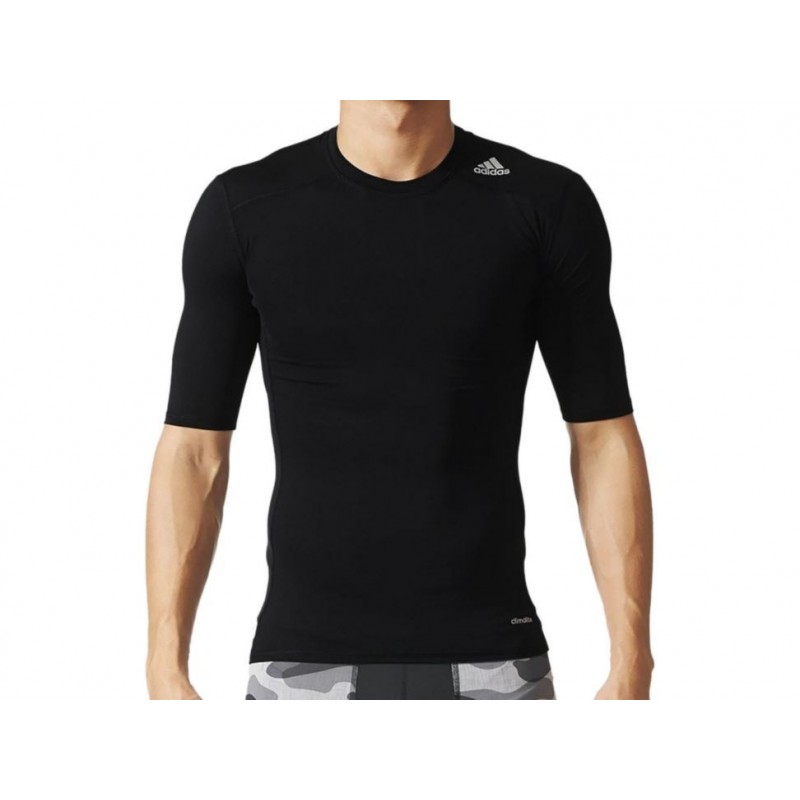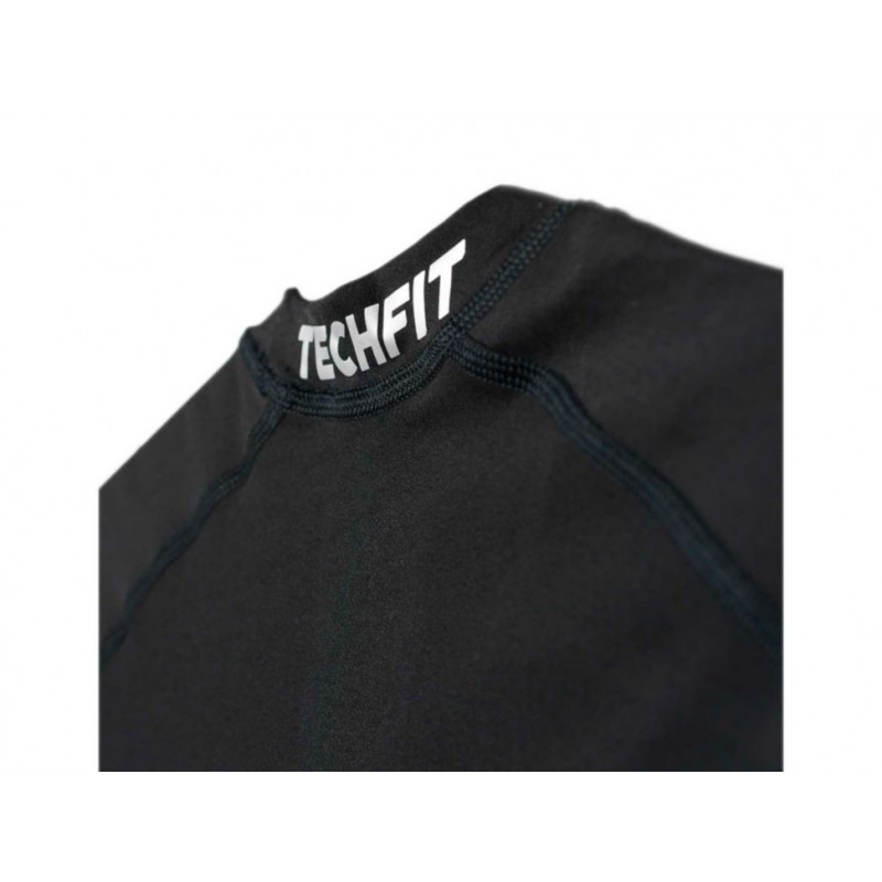 Playera con cuello redondo, corte ajustado, costuras planas que reducen la irritación y dejan una sensación muy suave sobre la piel, letras de *TECHFIT* estampadas en parte posterior del cuello, diseño adecuado para la disciplina