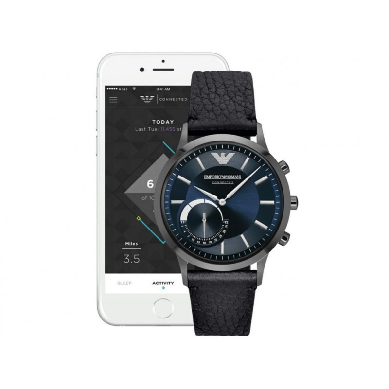 Emporio Armani hace su introducción en el mundo de los Wearables con el Smartwatch Híbrido Emporio Armani Connected. Con el estilo dinámico del diseño de Emporio Armani y los beneficios de la tecnología Wearable de hoy en día, el Smartwatch híbrido es compatible con los teléfonos inteligentes Android OS 4.4+