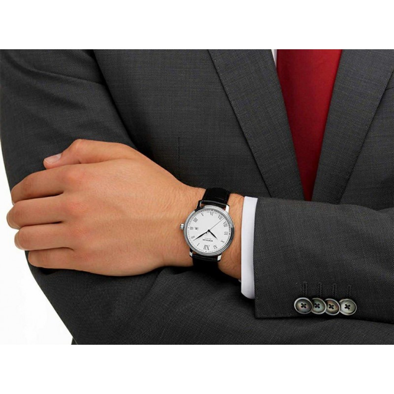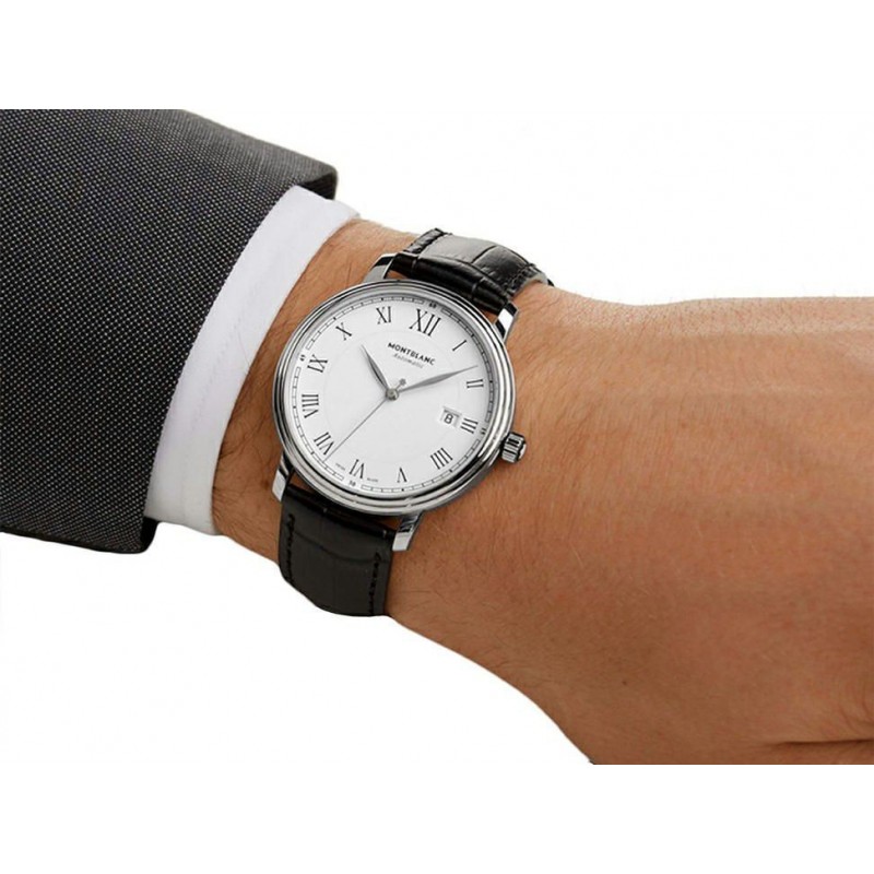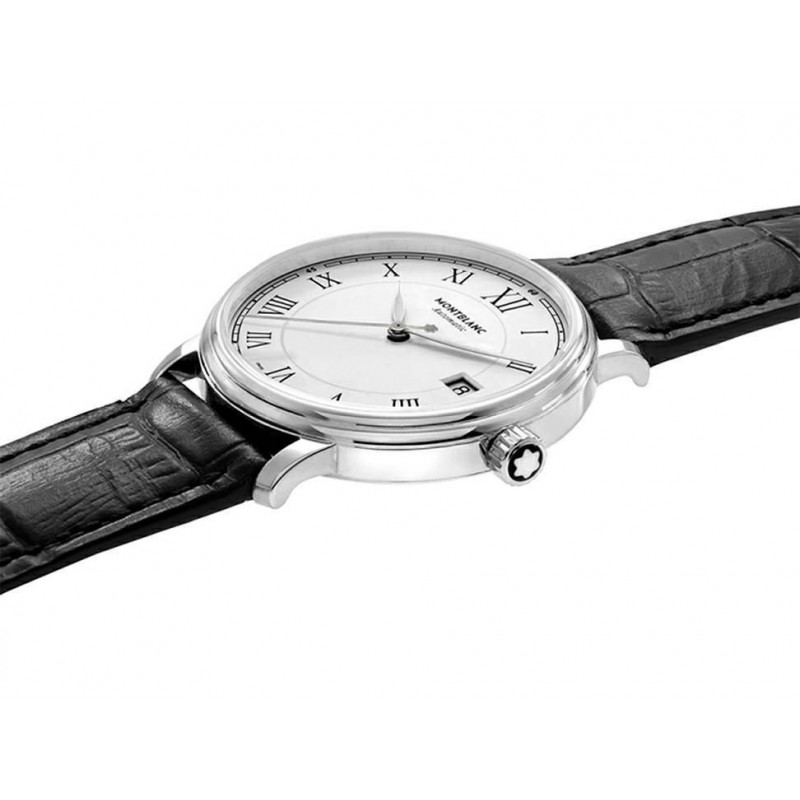 Montblanc Tradition Date Automatic demuestra una clara expresión del diseño Montblanc así como códigos relojeros clásicos. La caja luce Montblanc asas rectas y un novedoso bisel doble con cristal de zafiro abombado.
